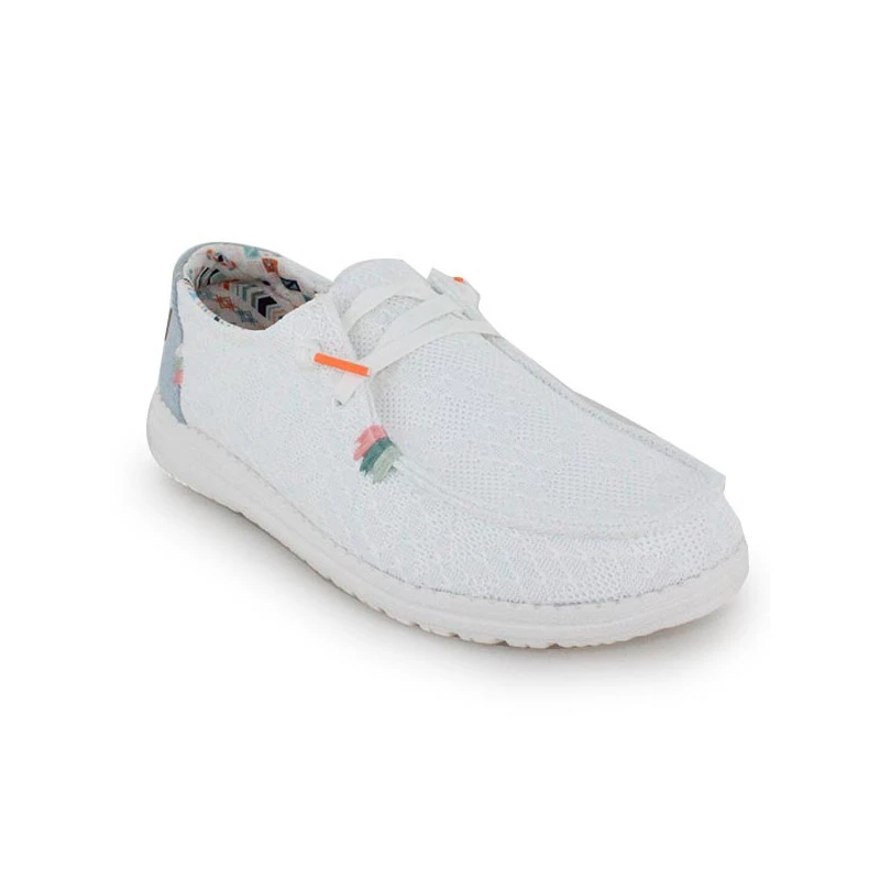 Les chaussures à lacet WENDY BOHO de la marque HEY DUDE offrent un style décontracté et un confort au porté remarquable. Légères, ultras souples et ultra confortables, votre quotidien prendra une nouvelle dimension avec les chaussures WENDY BOHO aux pieds. De plus, ces chaussures à lacets pour femme disposent d’une semelle amovible, un atout important pour les personnes qui portent des semelles orthopédiques !
