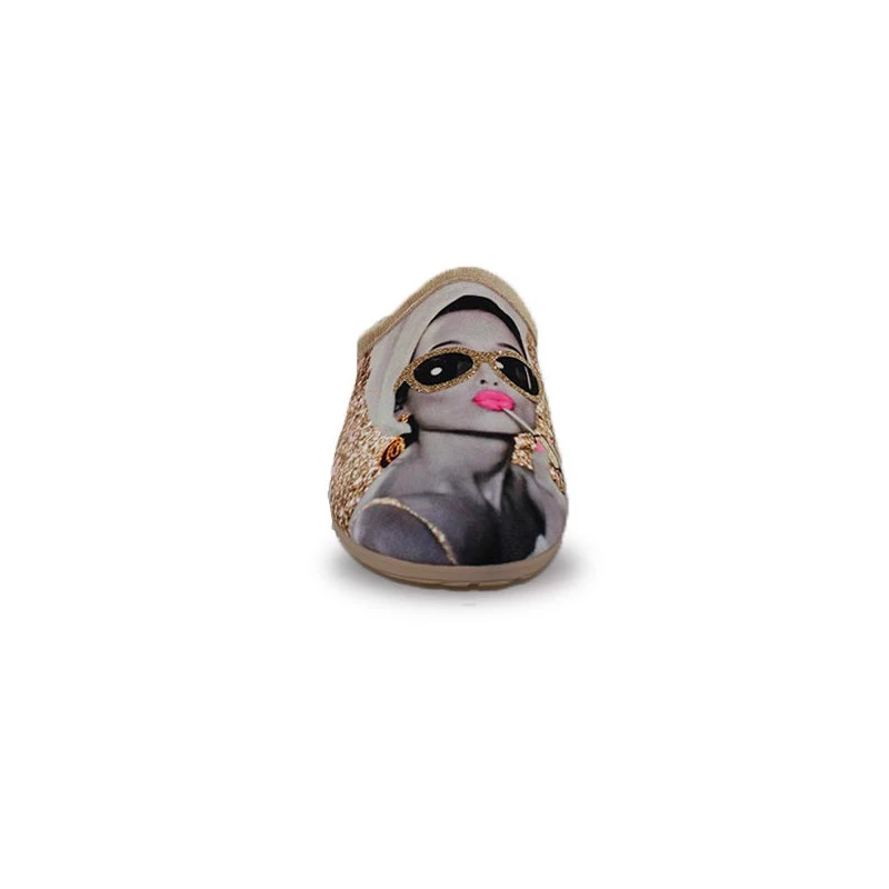 Les fans d’Audrey Hepburn seront ravies de pouvoir porter ces chaussons mules pour femme de La Maison de l’Espadrille ! Ornés d’un imprimé à l’effigie de cette grande actrice, ils sont parfaits pour le confort de vos pieds. Ces chaussons femme fantaisie disposent d’une semelle intérieure amovible et d’une semelle extérieure antidérapante, l’idéal pour que votre confort de marche soit optimal.