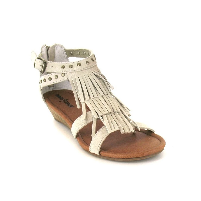 Habillées d’un beau cuir nubuck, de franges et de clous, ces sandales Minnetonka Monaco souligneront avec style toutes vos tenues estivales. Montées sur une semelle interne metalassée pour plus de confort, elles se veulent également légères et bien flexibles. Une bride boucle latérale et un zip au talon permettent de les enfiler plus facilement.