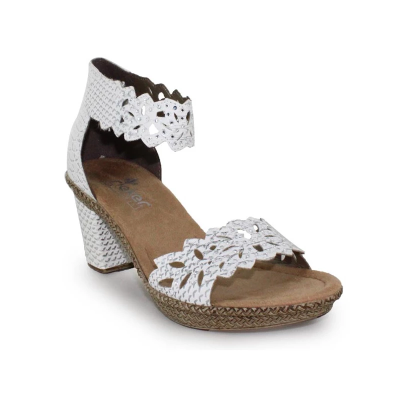 FĂ©minines, confortables et très faciles Ă porter, les sandales Ă talon pour femme de la marque RIEKER s’ajustent Ă vos chevilles grâce Ă leur bride Velcro. Entièrement ornĂ©es de petits strass sur le dessus, ces sandales femme se portent en toute occasion ! Vous apprĂ©cierez Ă©galement leur lĂ©gèretĂ© et la stabilitĂ© de leur talon.Â