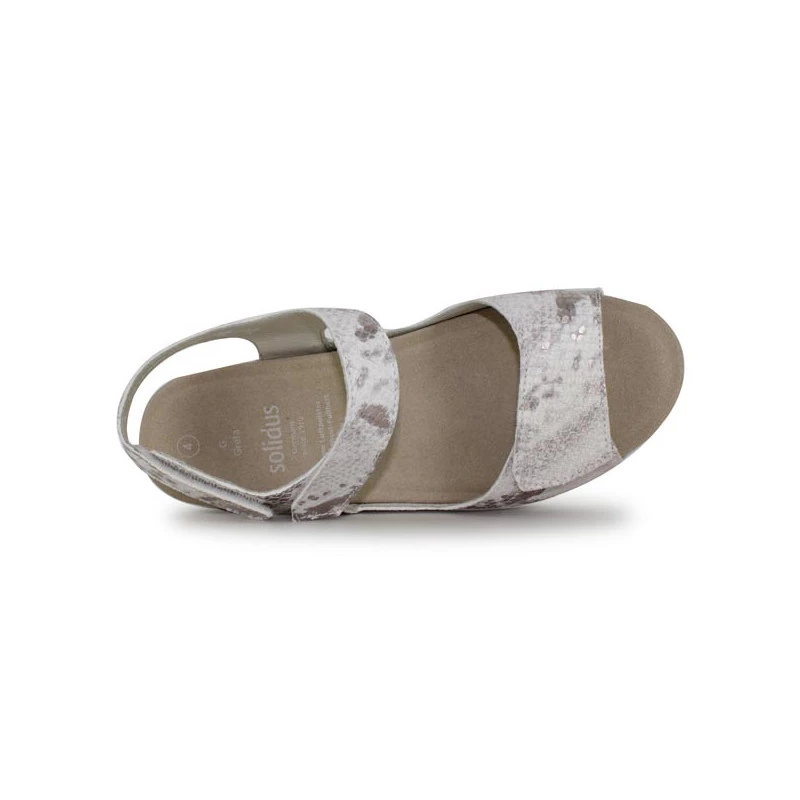 On est fan du style très actuel et féminin des sandales Velcro pour femme GRETA 48000 de la marque SOLIDUS. Tout en cuir imprimé serpent, orné de quelques touches métallisées, ces sandales femme se portent en toute occasion ! Elles disposent de diverses brides Velcro, vous facilitant ainsi l’ajustement et le maintien à chaque pied. Leur confort, elles le doivent à leur légèreté et à leur semelle intérieure amovible matelassée. De plus, avec leur semelle compensée bien stable, qui épouse le déroulement du pas, les sandales GRETA 48000 sont idéales pour marcher avec assurance.