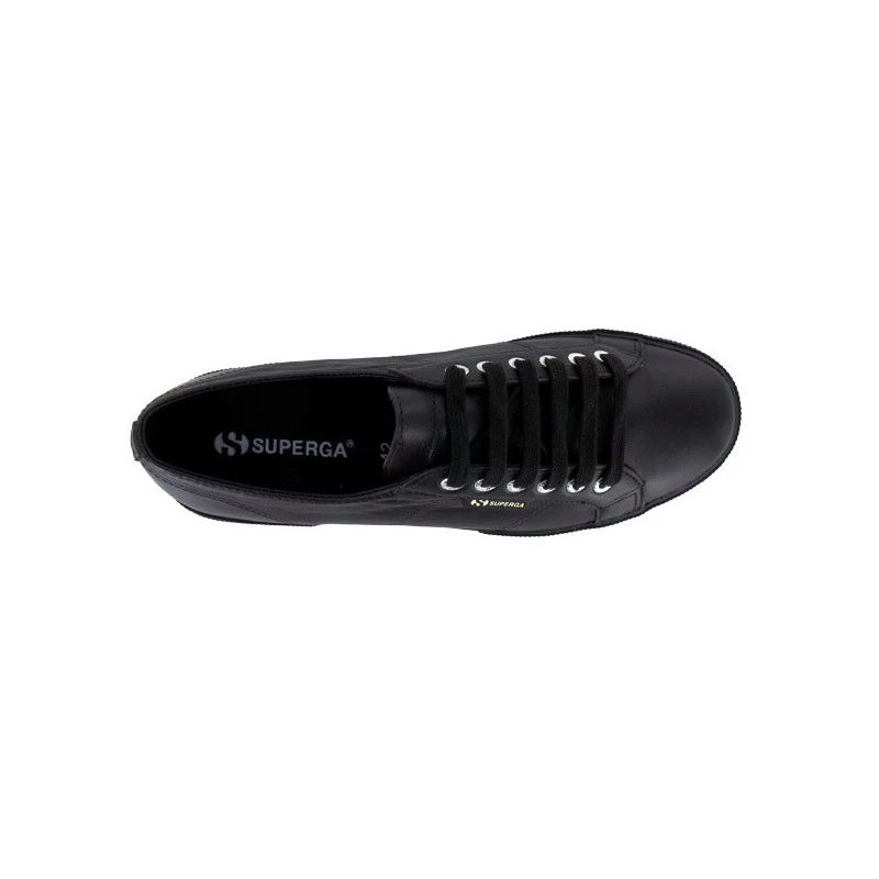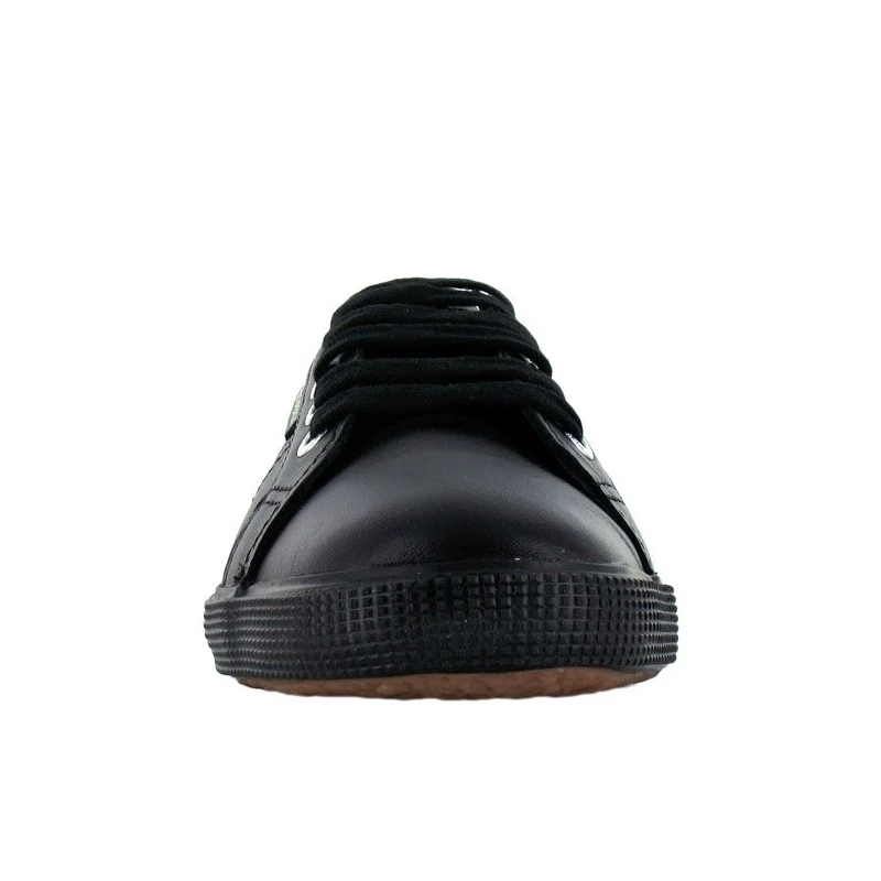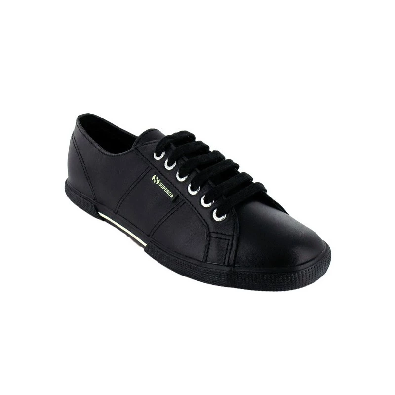 La marque Superga propose cette petite basket toute vêtue de noir, dont les oeillets argentés tranchent radicalement avec la couleur du cuir.